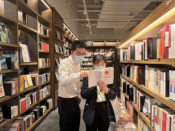 杭州西湖城投集团纪委采取多种方式组织青年纪检监察干部学习充电,磨炼本领。图为西湖城投集团纪委青年干部在工作之余挑选学习用书,在阅读中汲取知识的力量。(杭州西湖投资集团纪委 谭薛元 摄)