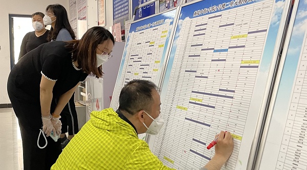 面对突如其来的疫情,北京市石景山区古城街道纪工委监察组迅速组织青年干部下沉社区,参与人员摸排、封控管理、物资储备、核酸检测等工作的监督检查。(北京市石景山区纪委监委供 田宵函 摄)