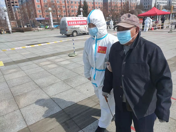 吉林省延边朝鲜族自治州和龙市纪委监委组建清风志愿者服务队,青年干部下沉共建社区开展疫情防控志愿服务,参与环境消杀、政策宣传、卡点值守、为民服务等工作。(吉林省延边朝鲜族自治州和龙市纪委监委供 李艺轩 摄)
