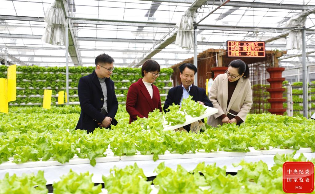 宁波市江北区纪委监委把乡村振兴作为“点题整治”的重点内容,聚焦乡村发展、乡村建设、乡村治理重点工作,紧盯村集体“三资”管理、产业发展及惠农政策落实等问题,推动解决群众急难愁盼问题。图为该区纪检监察干部到慈城镇三勤村科技蔬果园了解相关情况。(宁波市江北区纪委监委 何斌 摄)