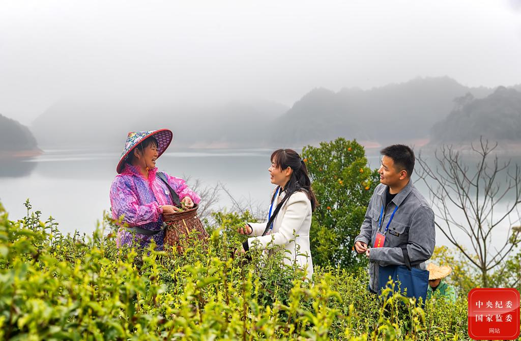 杭州市淳安县纪委监委围绕乡村振兴、惠民政策落实等情况,深入基层一线走访调研,听取群众意见建议,广泛收集问题线索,推动解决群众急难愁盼问题。图为该县纪检监察干部在里商乡湖上茶园向茶农了解相关情况。(杭州市淳安县纪委监委 谢航凯 摄)